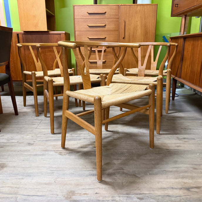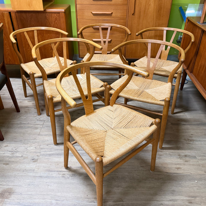 6 Mid Century Oak Wishbone Dining Chairs by Hans J Wegner of Denmark