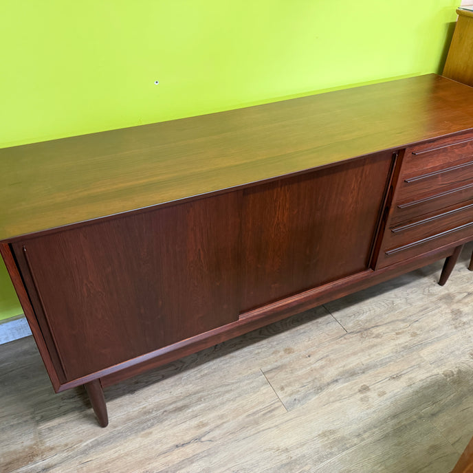 Mid Century Brazilian Rosewood Sideboard by HP Hansen of Denmark. Professionally Restored. 71”L x 19”D x 33”H $2295 #mcmsideboard #rosewoodsideboard #hphansen #madeindenmark #ottawa