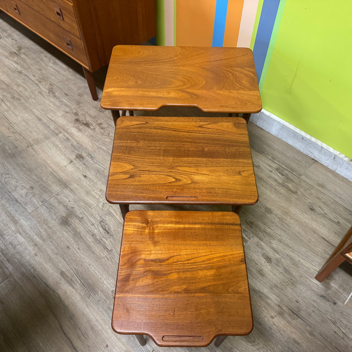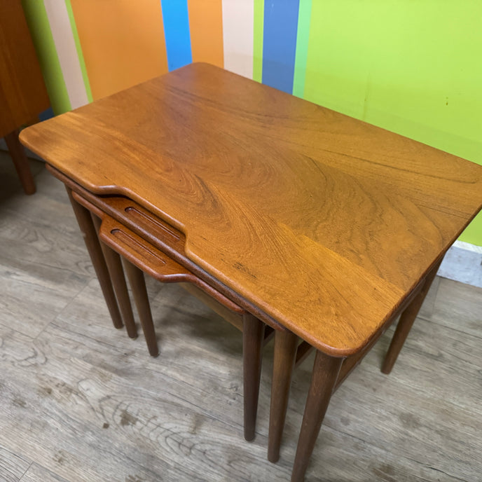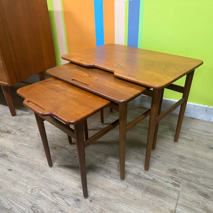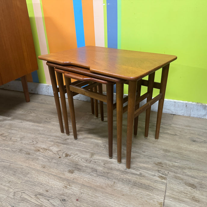 Mid Century Solid Teak and Oak Nesting Tables from Denmark