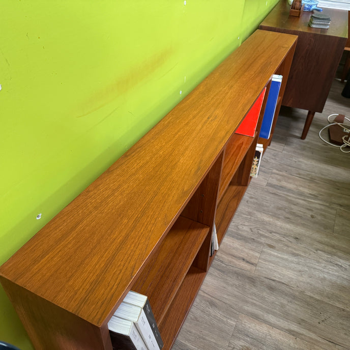 Mid Century Teak Bookcase. Bookcase has slight bubbling on top. Not noticeable to the casual observer. 72”L x 9”D x 28.5”H $495 #mcm #midcentury #mcmbookcase #teak #teakbookcase #ottawa