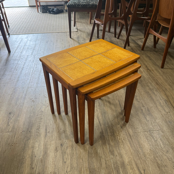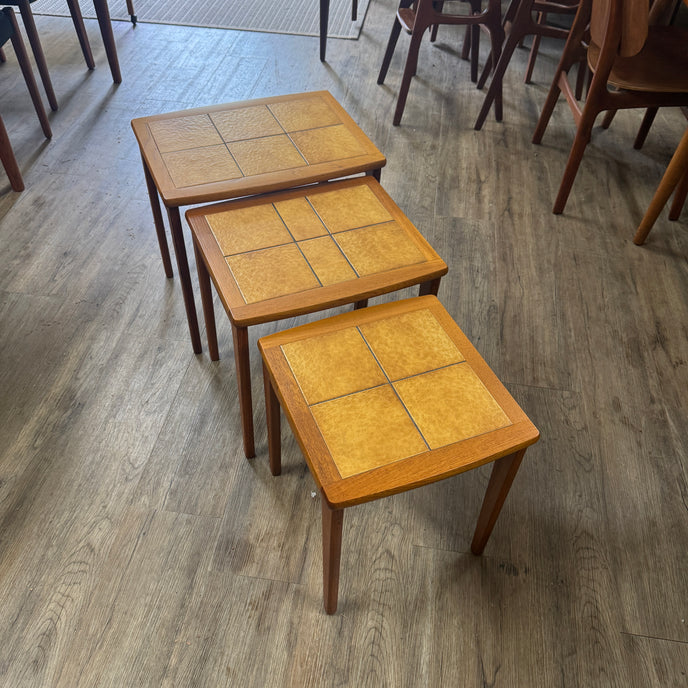 Mid Century Teak Nesting Tables. Professionally Restored. 20.5”W x 15.5”D x 19”H. $395 #mcm #midcentury #mcmnestingtables #teak #teaknestingtables #ottawa
