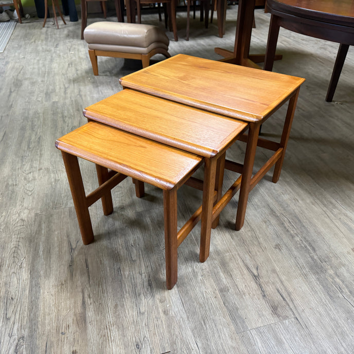 Mid Century Teak Nesting Tables. Professionally Restored. 23”W x 20”D x 18”H. $595 #mcm #midcentury #midcenturynestingtables #mcmnestingtables #teak #teaknestingtables #ottawa