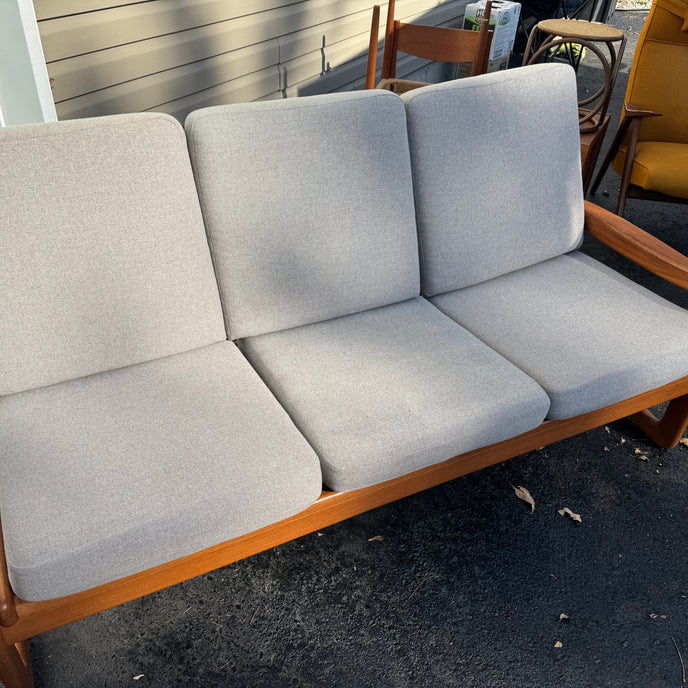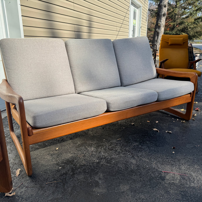 Mid Century Teak Sofa and Chair Set. In very good vintage condition. Contact for details and custom upholstery options. #mcm #midcentury #mcmsofa #mcmchair #teak #teaksofa #teakchair #ottawa