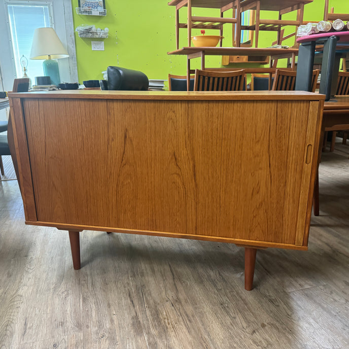 Mid Century Teak Tambour Door Sideboard / Record Cabinet. Professionally Restored. 47”W x 19”D x 31.5”H $995 #mcm #midcentury #teak #ottawa
