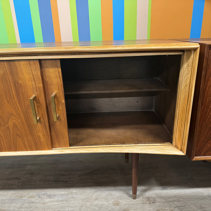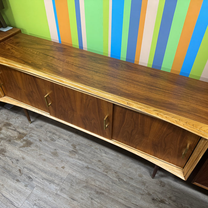 Mid Century Walnut and Ash Sideboard by Deilcraft Furniture of Canada. Professionally Restored. 68”L x 19”D x 31”H $1495 #mcm #midcentury #mcmsideboard #walnut #walnutsideboard #deilcraft #ottawa