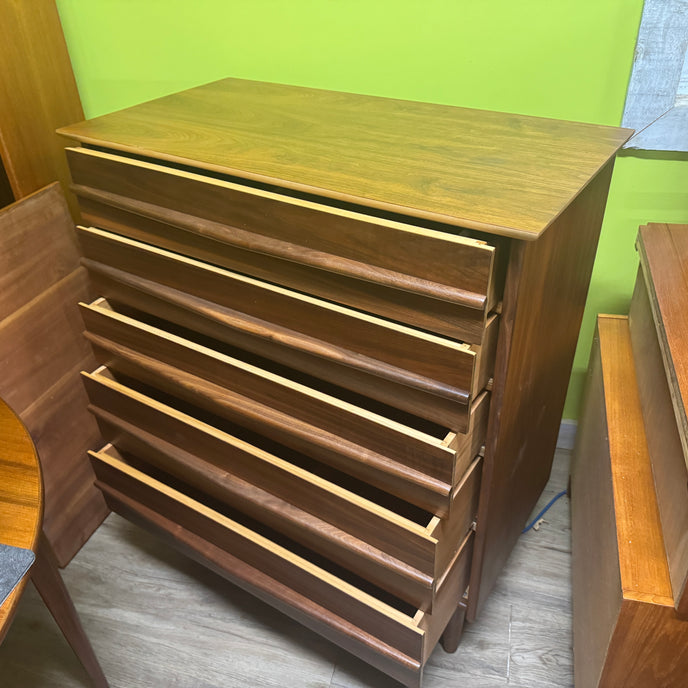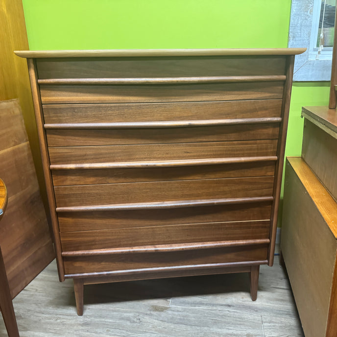 Mid Century Walnut Highboy Dresser by Gibbard Furniture of Napanee, Ontario. Professionally Restored. 38”W x 20”D x 43”H. $1195 #mcm #midcentury #mcmdresser #walnut #walnutdresser #gibbard #gibbardfurniture #napanee #madeinontario #ottawa