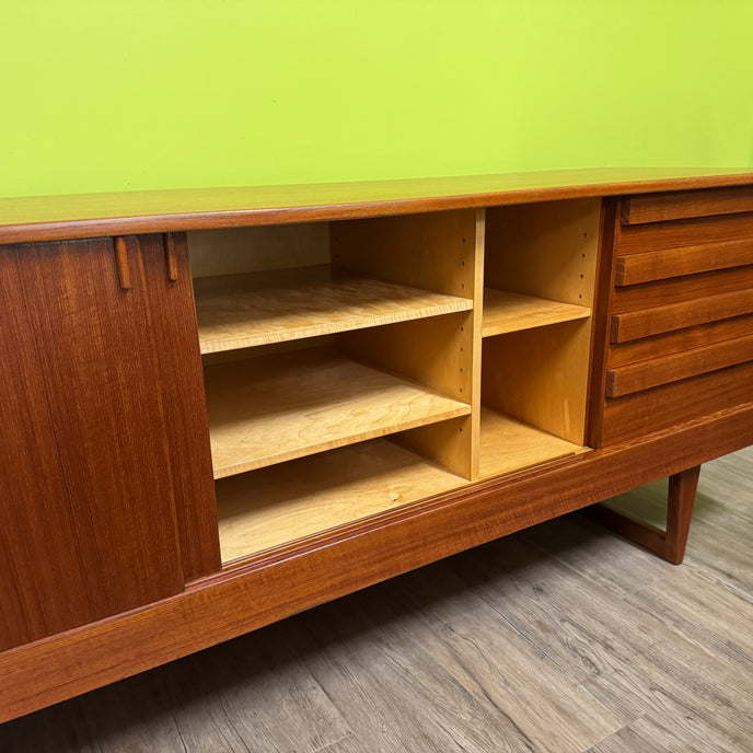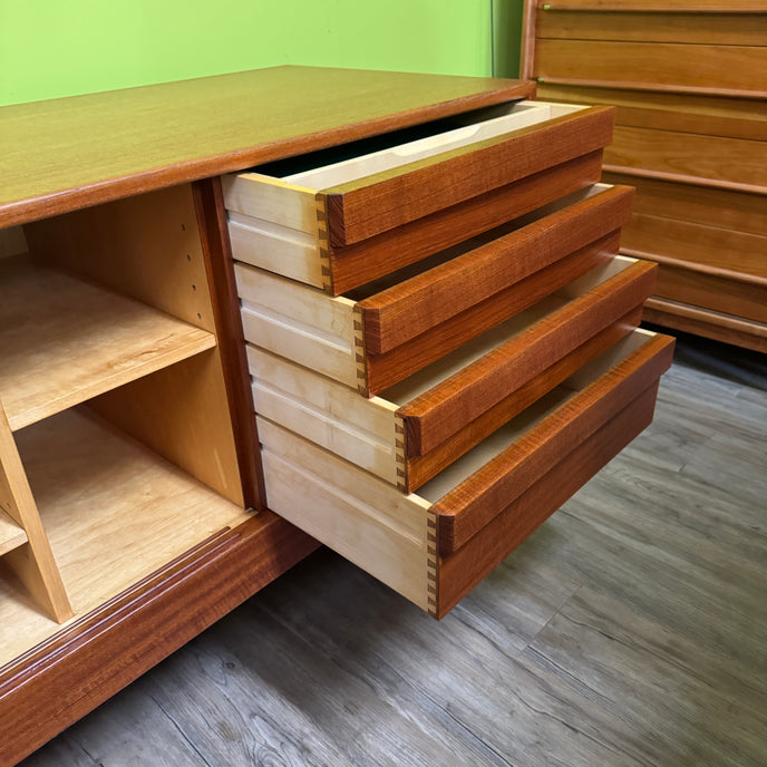 Mid Century Teak Sideboard by Kurt Ostervig for Jason Mobler of Denmark. Professionally Restored. 83”W x 21.5”D x 32”H. $2495 #mcm #midcentury #mcmsideboard #teak #teaksideboard #kurtøstervig #kurtostervig #jasonmøbler #madeindenmark #denmark #ottawa